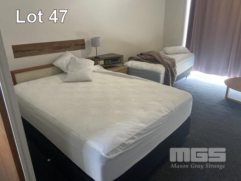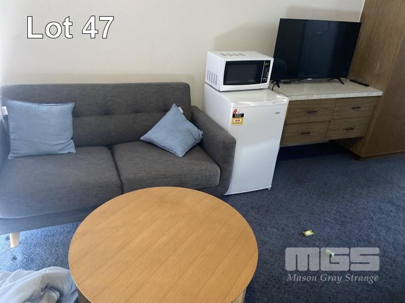ROOM 18 CONTENTS (UPSTAIRS) DOUBLE & SINGLE BED, BAR FRIDGE, MICROWAVE, TOASTER & KETTLE, 40" TV WITH REMOTE SIDE TABLE, COUCH & COFFEE TABLE WALL MOUNT A/C, IRON & BOARD