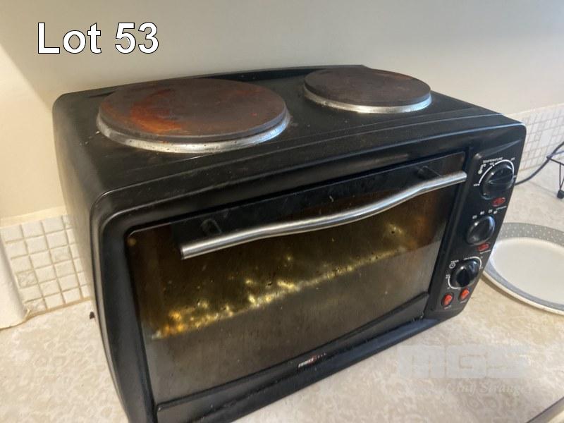 CONTENTS RECEPTION KITCHEN INC 6 BURNER OVEN, WALDORF HOT PLATE, GOLDSTEIN HOT PLATE, ALL LPG, PANASONIC MICROWAVE, MINI BAR FRIDGE, CENTRIX CHEST FREEZER, ELECTRIC KETTLE, COOKWELL TOASTER OVEN & ASSORTED UTENSILS