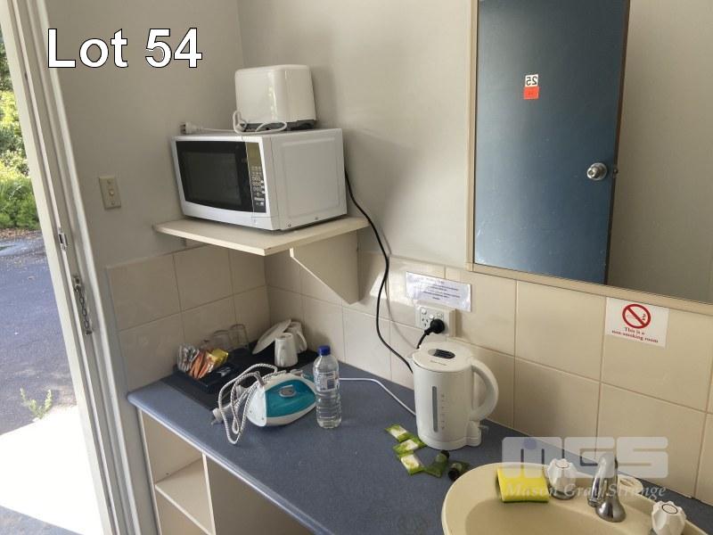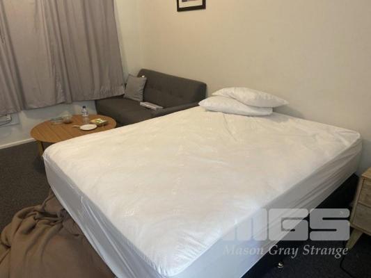 ROOM 25 CONTENTS DOUBLE BED, BAR FRIDGE, MICROWAVE, 2 x SIDE TABLES, 42" TV, WALL MOUNT WALL MOUNT A/C IRON & BOARD