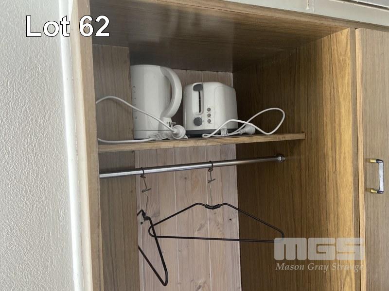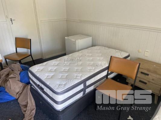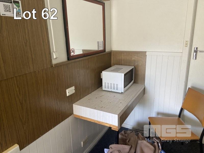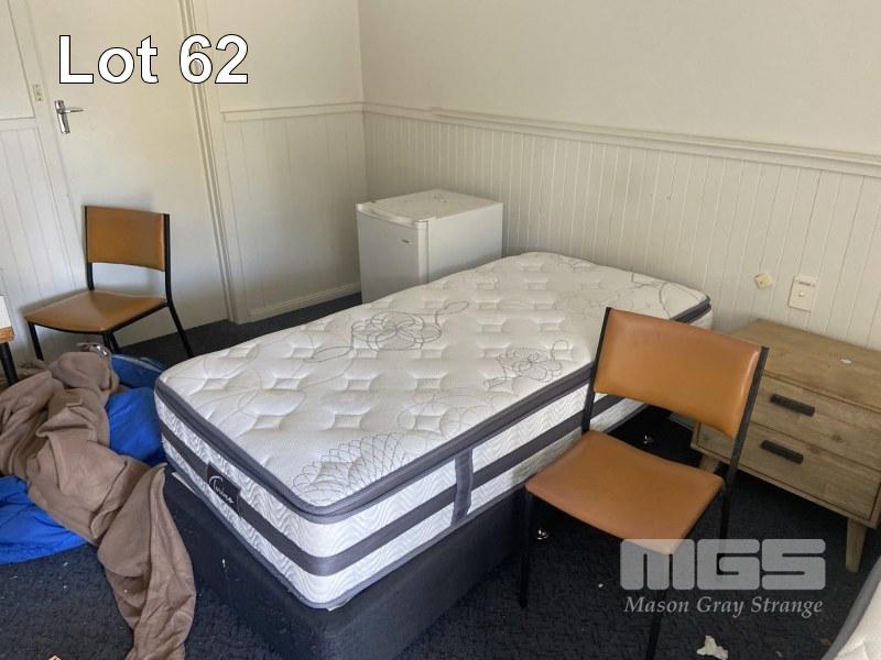 ROOM 34 CONTENTS 2 x SINGLE BEDS, BAR FRIDGE, MICROWAVE, KETTLE & TOASTER BEDSIDE CABINET, LG WALL MOUNT A/C
