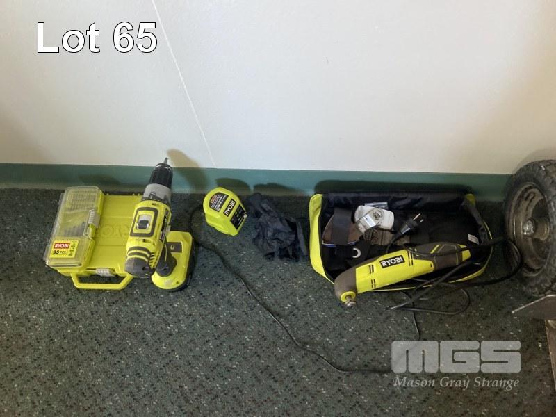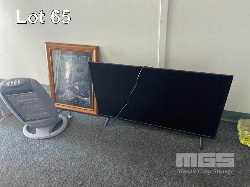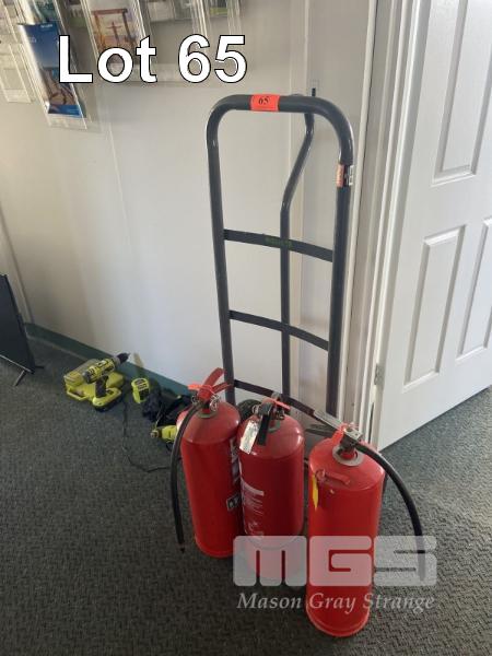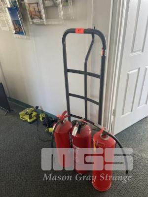 3 x FIRE EXTINGUISHERS, HEAVY DUTY SACK TRUCK, RHINO ALLOY FOLD OUT LADDER, 1800-3300mm, SPACE HEATER, RYOBI BATTERY DRILL WITH CHARGER, RYOBI 240V MULTI TOOL & 42" AVA TV WITH REMOTE