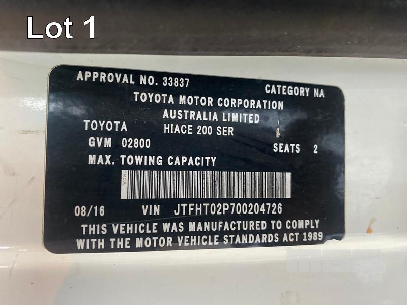 2016 TOYOTA HIACE VAN REG: S986 BNT VIN: JTFHT02P700204726 ODO: 112,897kms SHOWING MANUAL TRANSMISSION, DIESEL, AIR CON, MOD: KDH201R-RBMDYQ