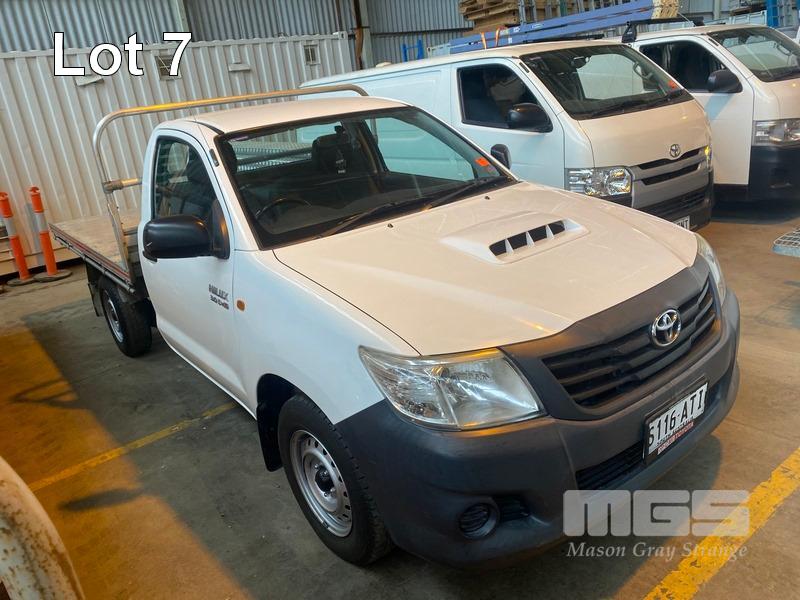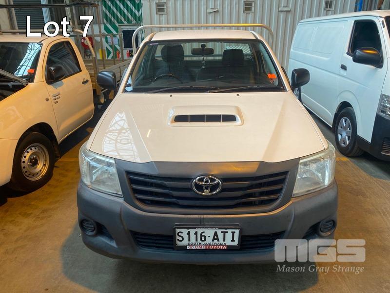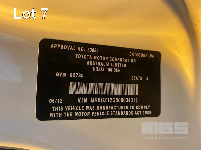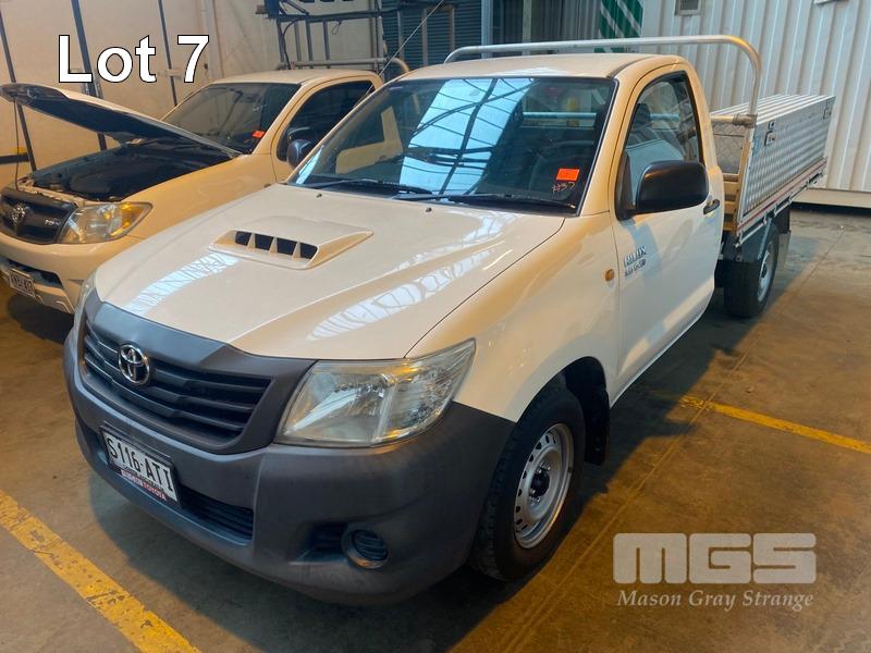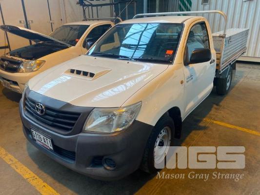 2012 TOYOTA WORKMATE HILUX SINGLE CAB UTILITY REG: S116 ATI VIN: MR0CZ12G5000034312 ODO: 145,835kms SHOWING MANUAL TRANSMISSION, TURBO DIESEL, AIR CON, MOD: 150SER ALLOY TRAY WITH FULL LENGTH ALLOY TOOL BOX