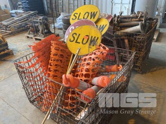 BASKET STILLAGE WITH SAFETY SIGNS & BOLLARDS