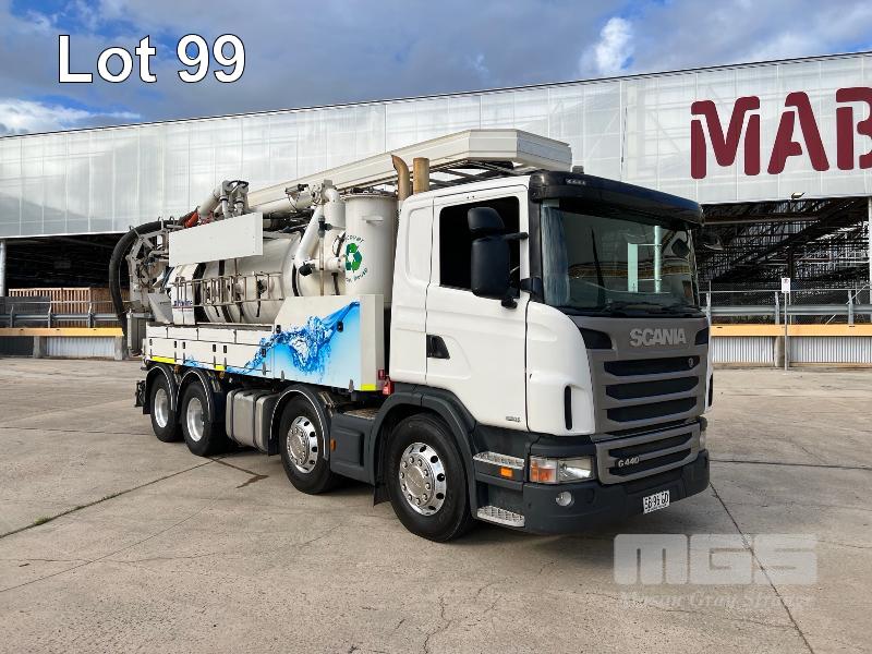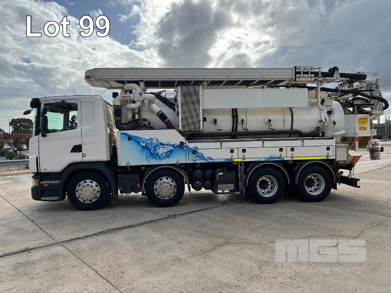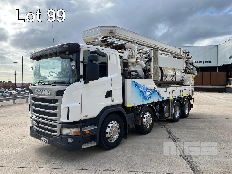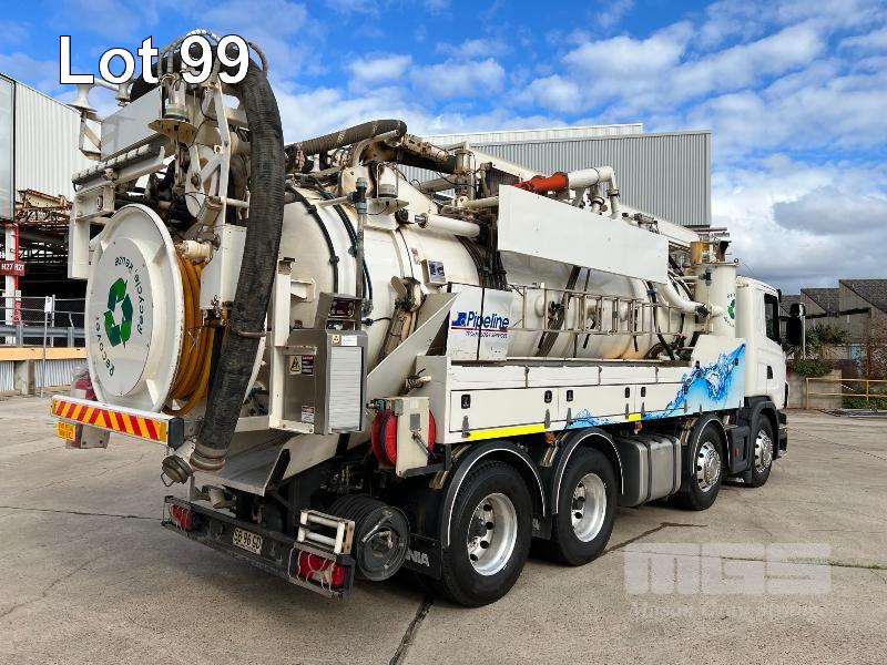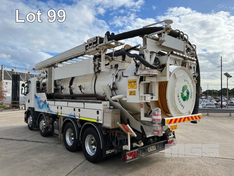 VACUUM PUMP TRUCK 8 x 4 MANUFACTURED BY SPOUTVAC AUSTRALIA, KROLL PUMP, 2012, 10,000L, REMOTE HYDRAULIC SYSTEM, HYDRAULIC HOSE REEL & BOOM, MINE SPEC (HAS NEVER BEEN ON MINE SITE) MOUNTED ON 2012 SCANIA 8 x 4 CAB CHASSIS, MODEL: G440-LB8X4MEB, VIN: XLEG8X40005292329, ODO: 198,110km, 8,900 HOURS, NEW ENGINE FITTED, AUTO, FIRE SUPPRESSION, REVERSE CAMERA, AIRBAG SUSPENSION, ALLOY WHEELS WITH BOOKS & 1 x KEY