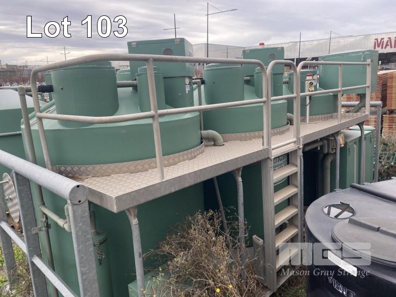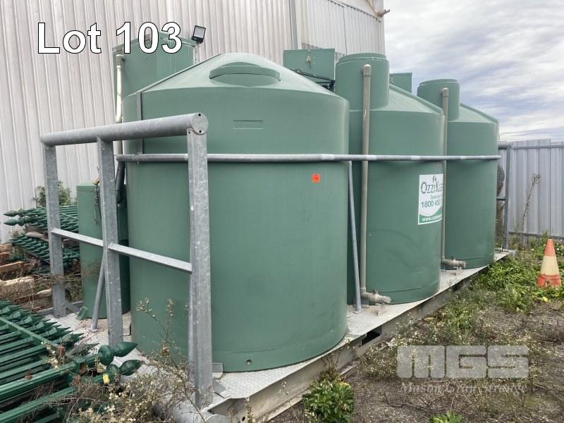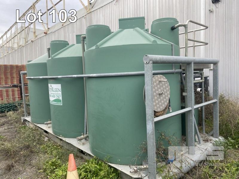 PORTABLE SEWERAGE SYSTEM, OZZI KLEEN MOD: XRP10 DOM: 2012 MOUNTED ON ROLL OFF GALV SKID BASE 3 x PVC TANKS, 4,150 LITRE FLOW CAP: 6,000 LITRES/DAY WASTE WATER TREATMENT SYSTEM