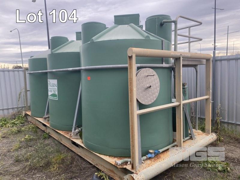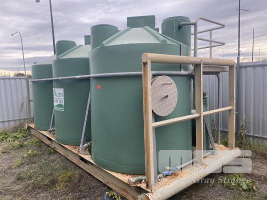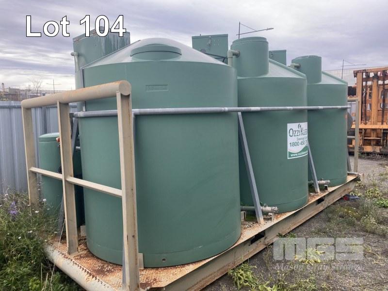 PORTABLE SEWERAGE SYSTEM, OZZI KLEEN MOD: XRP10 DOM: 2012 MOUNTED ON ROLL OFF GALV SKID BASE 3 x PVC TANKS, 4,150 LITRE FLOW CAP: 6,000 LITRES/DAY WASTE WATER TREATMENT SYSTEM
