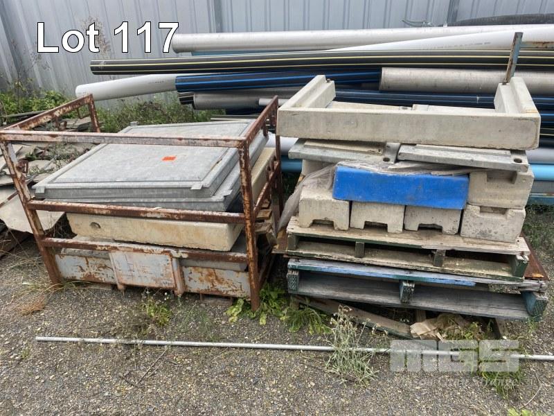 2 x STILLAGES CONCRETE COUNTERWEIGHTS & PIT COVERS