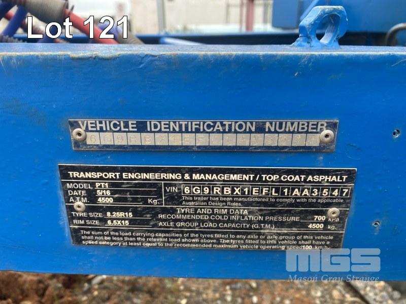 PREMIER TRAILERS BEAVER TAIL SINGLE AXLE PLANT TRAILER AIR BRAKES PIN HITCH ATM: 4,500kg REG: S012 TGP VIN: 6G9RBX1EFL1AA3547 3800 x 1650mm FOLD DOWN HD RAMPS