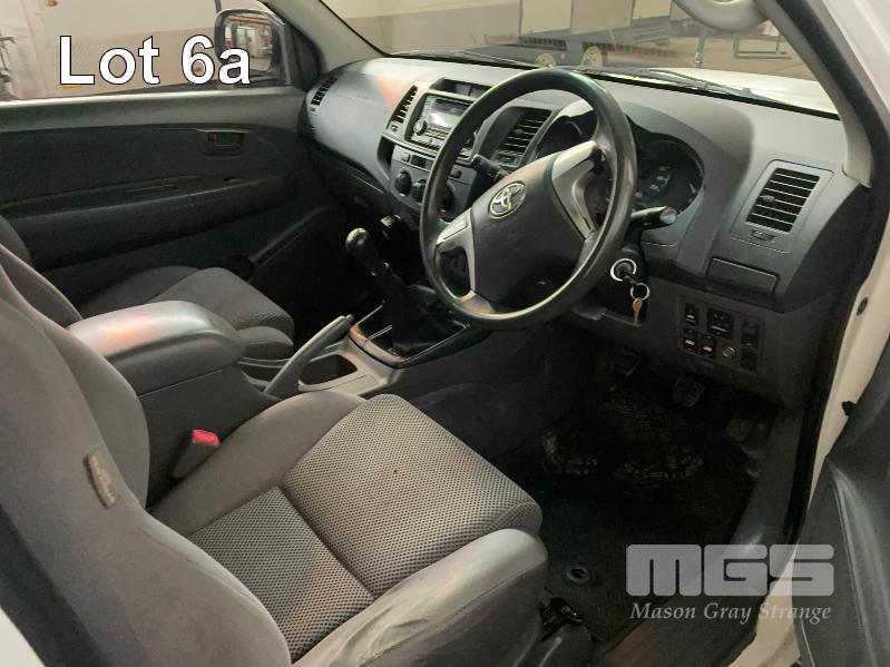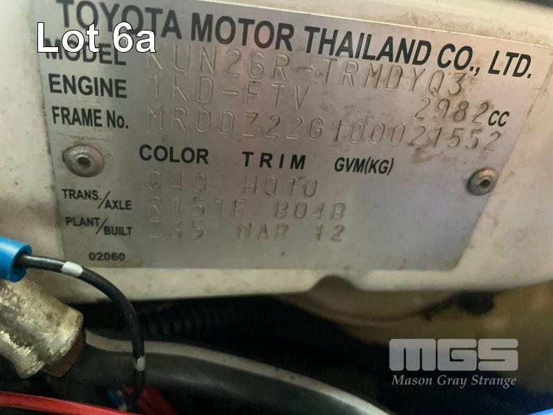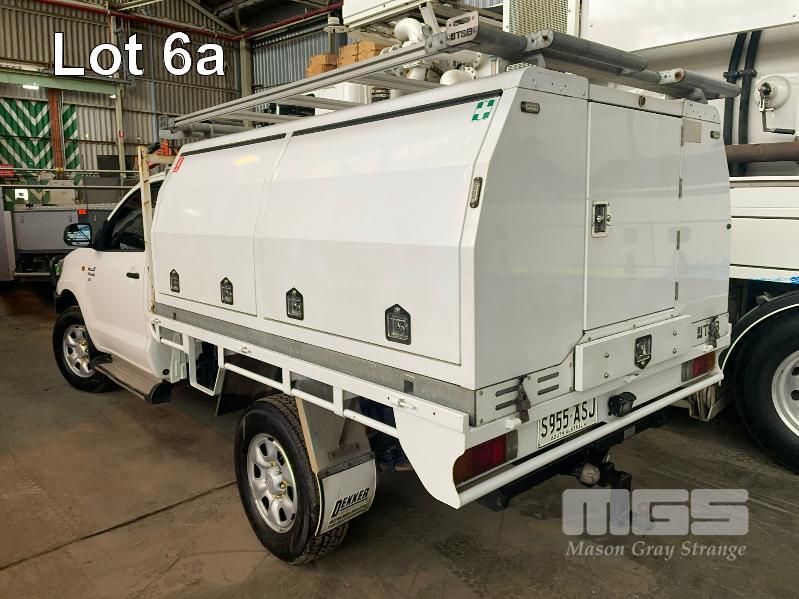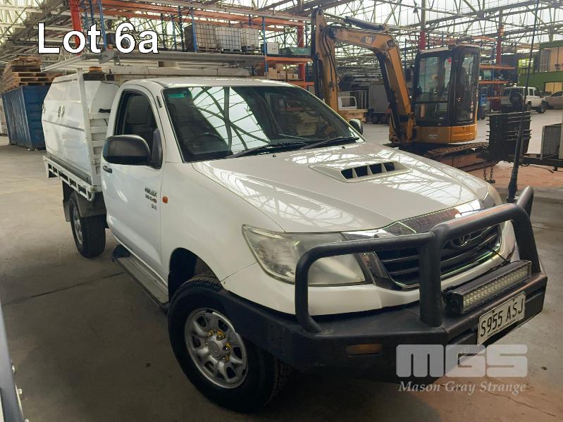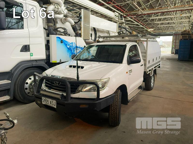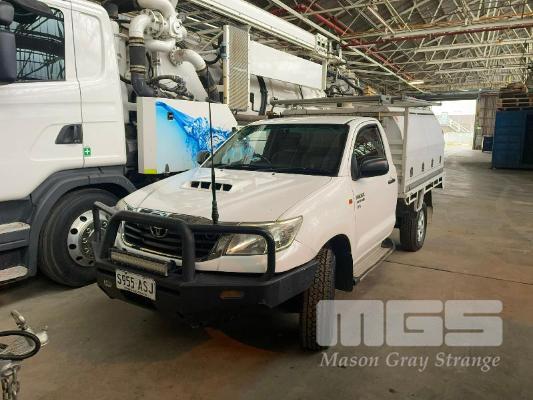 2012 TOYOTA HILUX SR SINGLE CAB UTE 4X4 REG: S955ASJ (SA) VIN: MRODZ22G100021552 ODO: 252,753 5 SPEED MANUAL, DIESEL, 1 DOORS, 2 SEAT, 4X4 AIR BAG, AIR CON, CD PLAYER, SPARE WHEEL, TRADEMANS FITOUT, MODEL: KUN26R, REMOVABLE TRADE CANOPY WITH 5 DOOR STORAGE, LIGHTS, LADDER RACK, PULL OUT DRAWER, BULL BAR, LED LIGHTS, TOW PACK (NO PAPERS, WITH 1 KEY/S, WITH OWNER'S MANUAL, WITH SERVICE BOOKS)