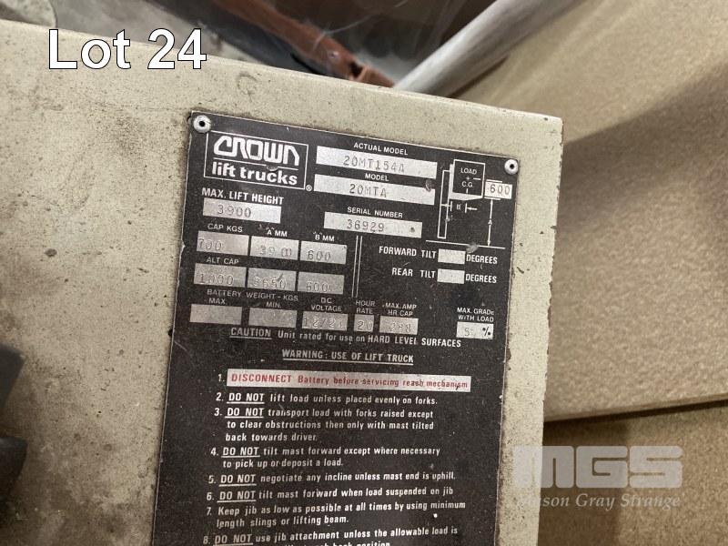 WALK BEHIND ELECTRIC FORKLIFT, CROWN MOD: 20MTA 3,900mm LIFT 700kg 4 BRAND NEW BATTERIES FITTED