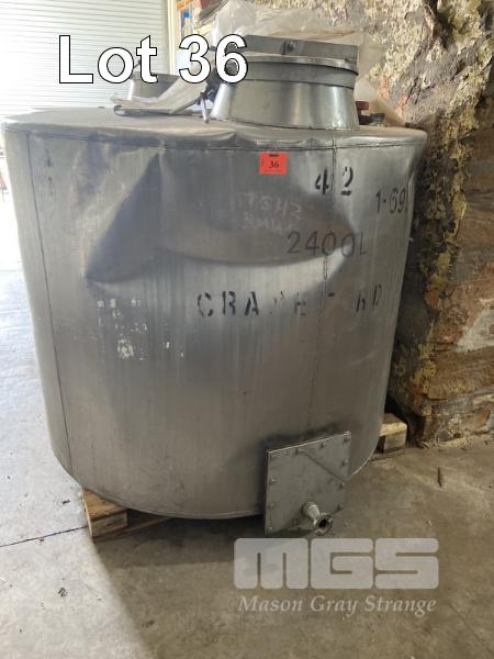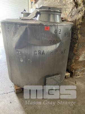 STAINLESS STEEL TANK, 2,400 LITRE TOP & SIDE ACCESS HATCHES NO STAND