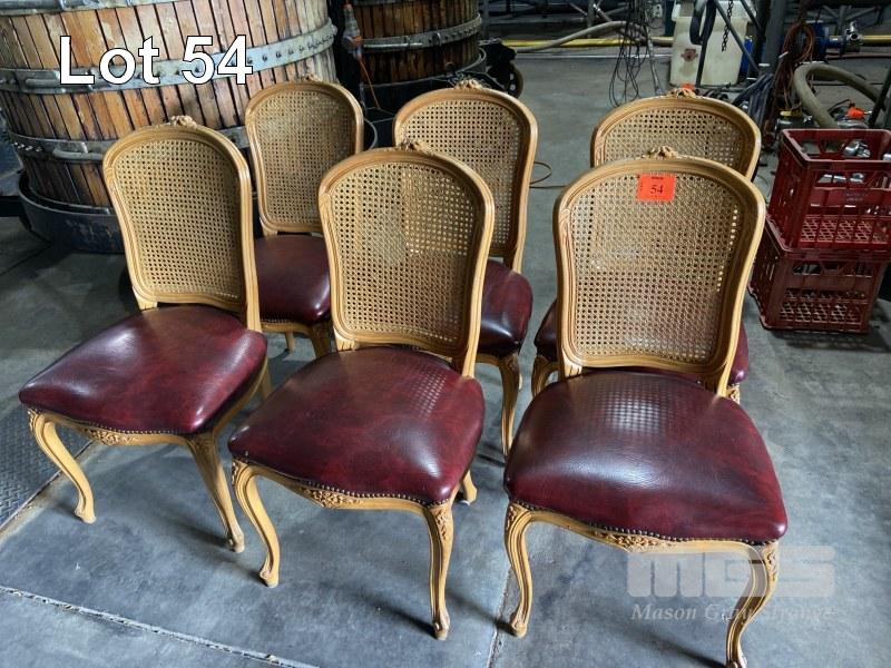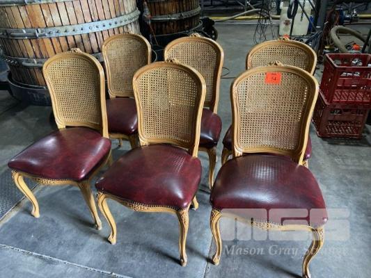 6 x BENT TIMBER CHAIRS WITH RED LEATHER SEATS