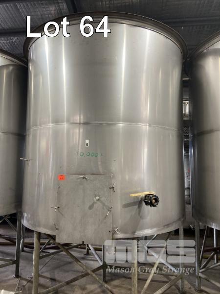 STAINLESS STEEL OPEN TOP TANK, 10,000 LITRE WITH TAP & CAP & LID & COOLING JACKETS ON GALV STAND