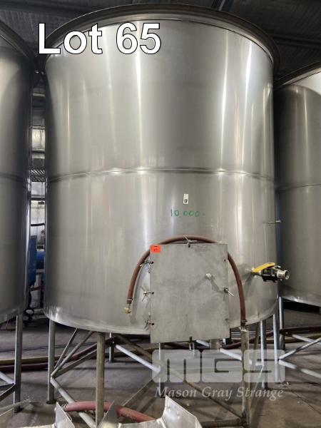 STAINLESS STEEL OPEN TOP TANK, 10,000 LITRE WITH TAP & CAP & LID & COOLING JACKETS ON GALV STAND