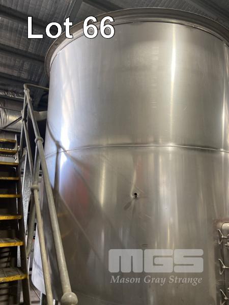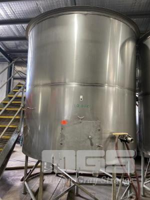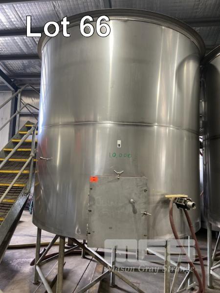 STAINLESS STEEL OPEN TOP TANK, 10,000 LITRE WITH TAP & CAP & COOLING JACKETS ON GALV STAND (NO LID)
