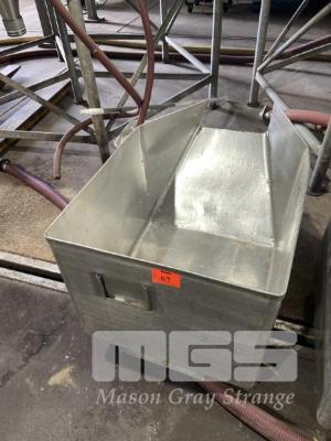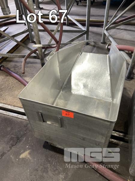 STAINLESS STEEL MOBILE BIN, 1/4 CUBIC METER WITH POURER & FORK POCKETS ON WHEELS