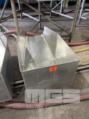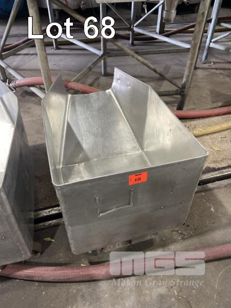 STAINLESS STEEL MOBILE BIN, 1/4 CUBIC METER WITH POURER & FORK POCKETS ON WHEELS .