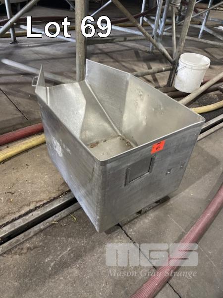 STAINLESS STEEL BIN, 1/4 CUBIC METER WITH POURER & FORK POCKETS NO WHEELS