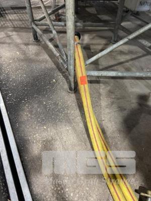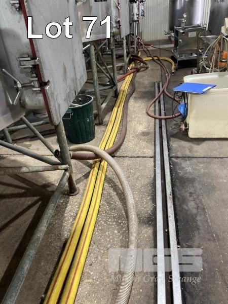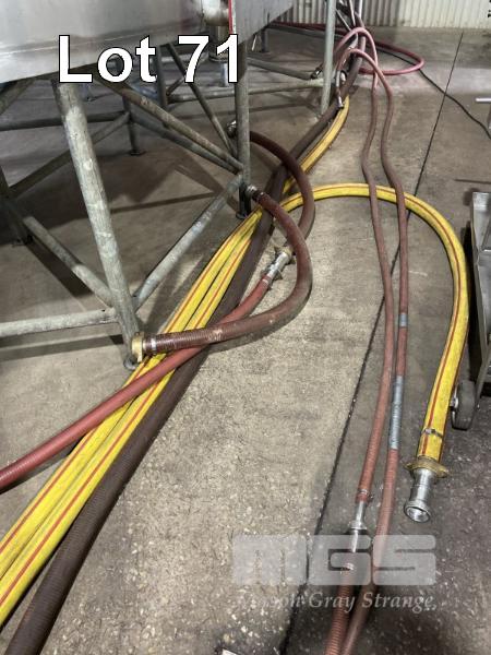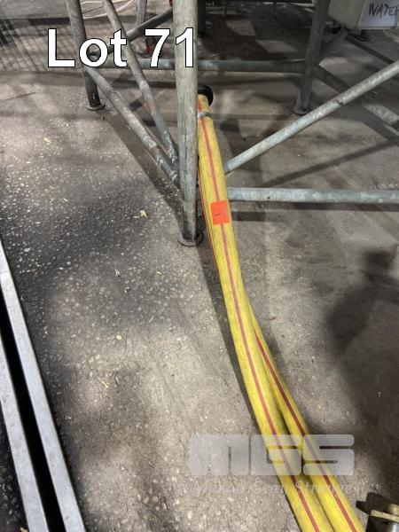 2 x 3" YELLOW TRANSFER x 11m HOSES WITH STAINLESS STEEL FITTINGS & 1 @ RED, 9m & ASSORTED SHORT HOSE