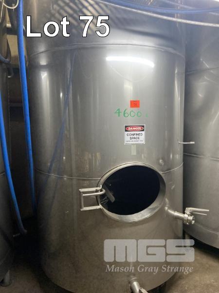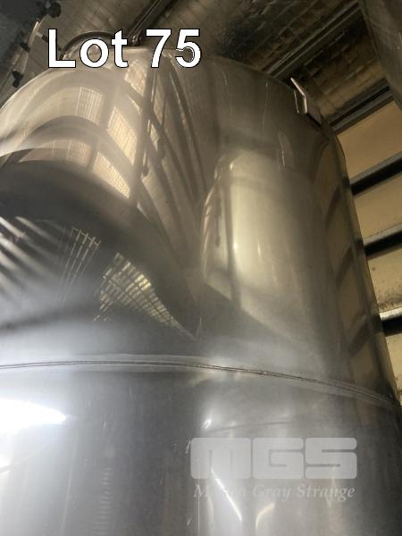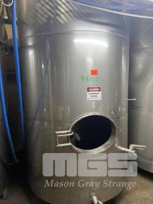 STAINLESS STEEL UPRIGHT TANK, 4,600 LITRE ON SHORT LEGS, COOLING JACKET JOHN TRINNIE ENG TOP & SIDE ACCESS HATCHES TAPERED BOTTOM & VALVES
