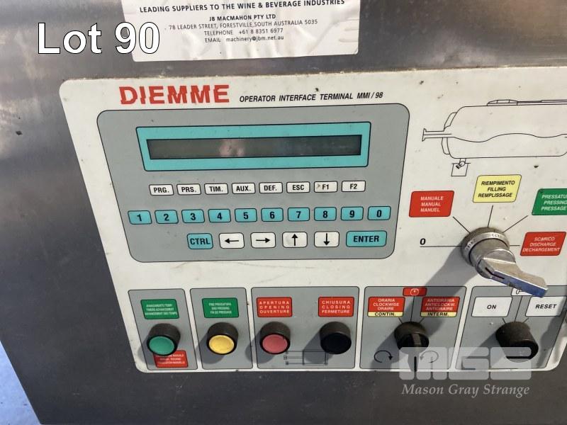 DIEMME BAG PRESS, ITALY TYPE: GH000000048 S/NO: C221205 DOM: 2001 WITH STAINLESS STEEL TOP LOAD CHUTE DIGITAL READOUT CONTROL, MOBILE FITTED WITH BECKER COMPRESSOR TYPE: KD3.140 7.5/9.0kw 415V 15000m/BAR