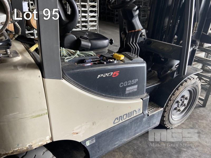CROWN FORKLIFT PRO 5 MOD: CG25P-5 LPG PNEUMATIC TYRES 3 STAGE CONTAINER MAST 4,639 HOURS SIDE SHIFT HYDRAULIC ATTACHMENT LINES