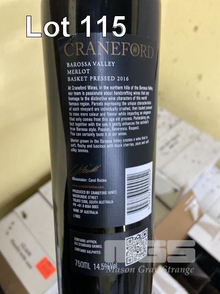 58 (APPROX) x BOTTLES CRANEFORD 2016 MERLOT BAROSSA VALLEY