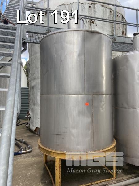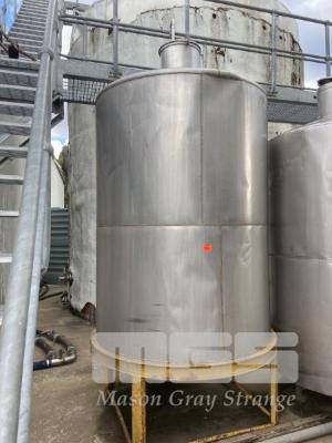 STAINLESS STEEL UPRIGHT TANK, 6,200 LITRE TOP & SIDE HATCHES CONICAL BASE & VALVES