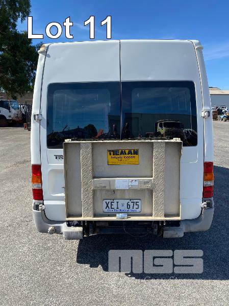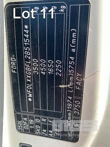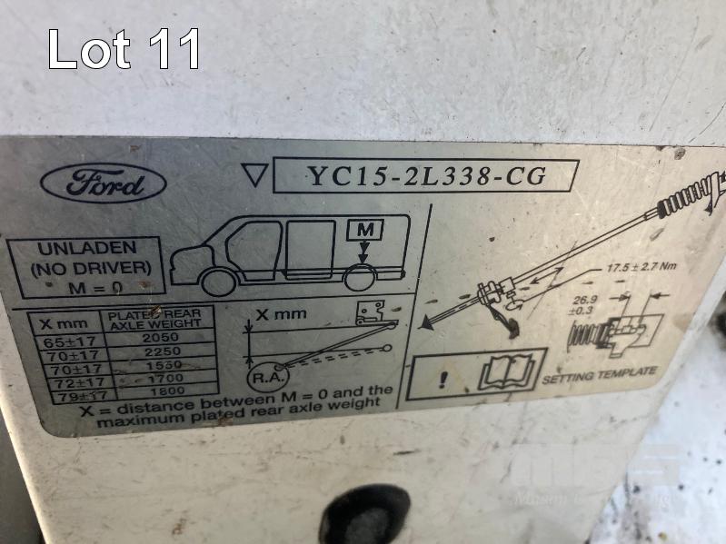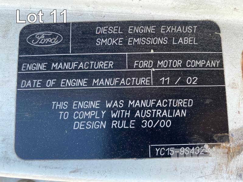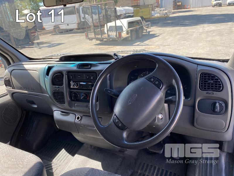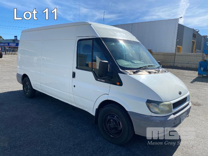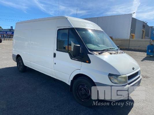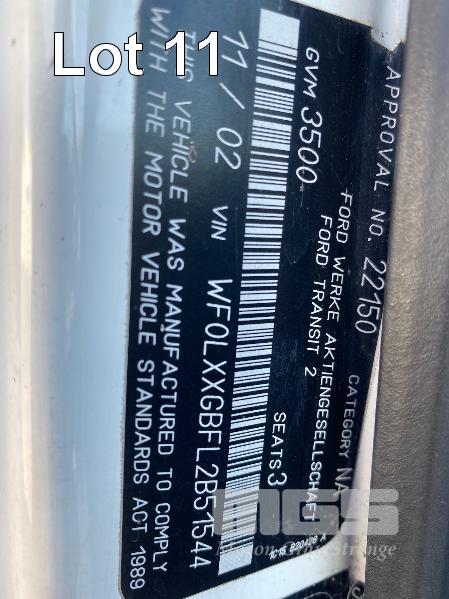 2002 FORD TRANSIT 2 90-T350 LWB VAN VIN: WF0LXXGBFL2B51544 ENG: L2B51544 ODO: 344,530kms SHOWING 2.4 LITRE TURBO DIESEL, PUSH BUTTON AUTO, WHITE DUCO, 4 DOORS, 3 SEAT, AIR CON, BLUETOOTH, CARGO BARRIER, CD PLAYER, CENTRAL LOCKING, SPARE WHEEL, GVM: 3,500kg VAN REAR DIMENSIONS: 1700 (W) x 3200 (L) x 1650mm (H) TIEMAN HYDRAULIC TAILGATE LOADER MOD: TD350A LIFT CAP: 350kg WITH REMOTE CONTROL NEW TYRES HAS HAD SECOND MOTOR INSTALLED WHICH HAS DONE APPROX 190,000kms KEY #25 (WITH PAPERS, WITH 2 KEY/S)