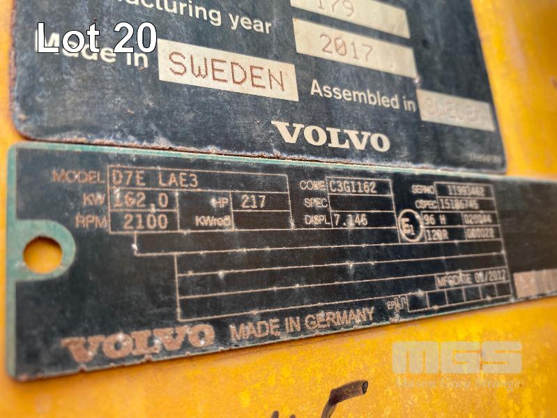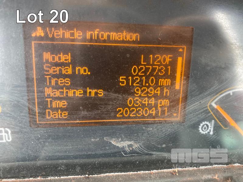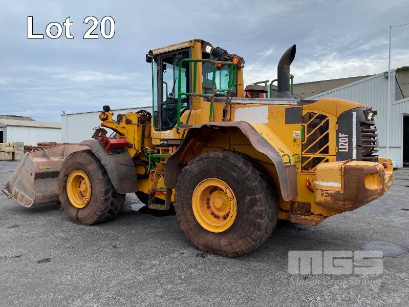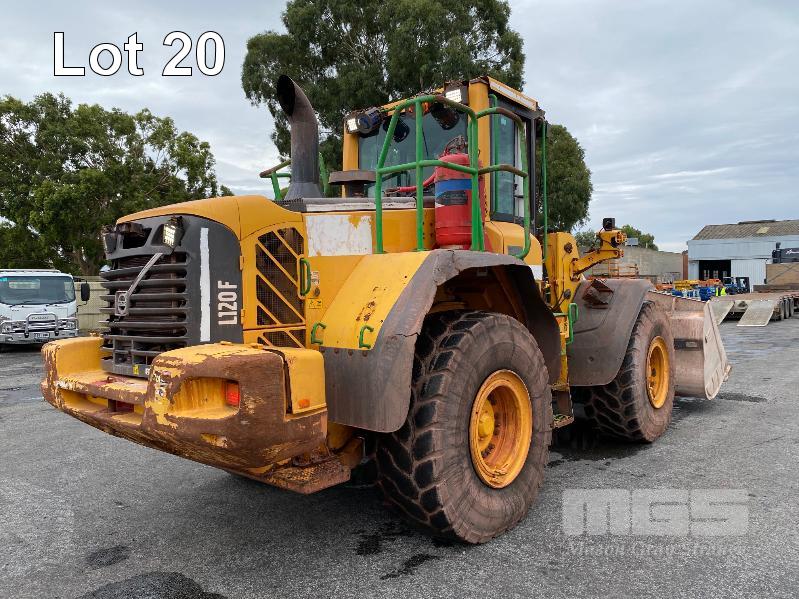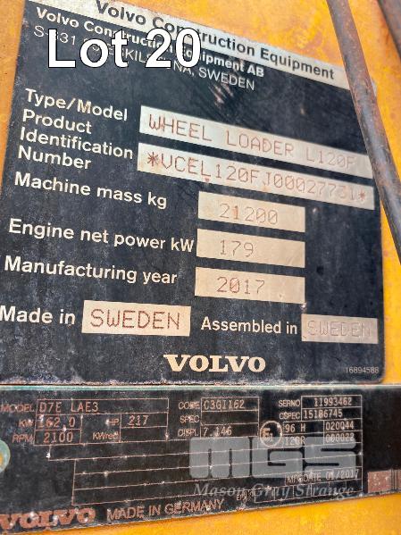 2017 VOLVO L120F WHEELED ARTICULATED FRONT END LOADER PIN: VCEL120FJ00027731 HOURS: 9,294hours SHOWING VOLVO, 6 CYLINDER TURBO, DIESEL, 179kw (217HP) ENCLOSED AC CAB ROPS/FOPS GP BUCKET 3.50m3 LED FORWARD & REAR SPOTLIGHTS & WARNING BEACONS REAR CCTV & LCD SCREEN MINE SPEC FIRE SUPPRESSION SYSTEM BATTERY ISOLATION SWITCHES QMW INDUSTRIES WORK PLATFORM CONTROL SYSTEM EMERGENCY PUSH BUTTON STOP SWITCHES REAR & SIDE MOUNT KEY #59 ASSET #LS145 (NO PAPERS, NO OWNER'S MANUAL, NO SERVICE BOOKS)