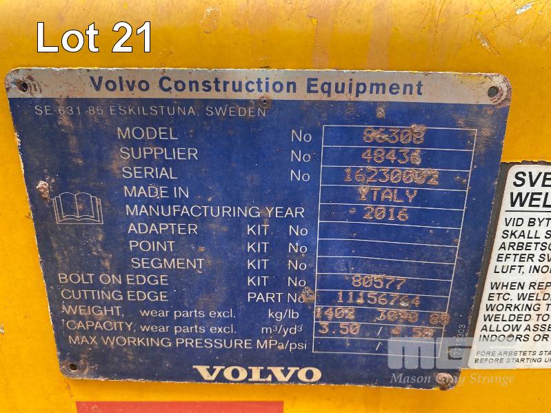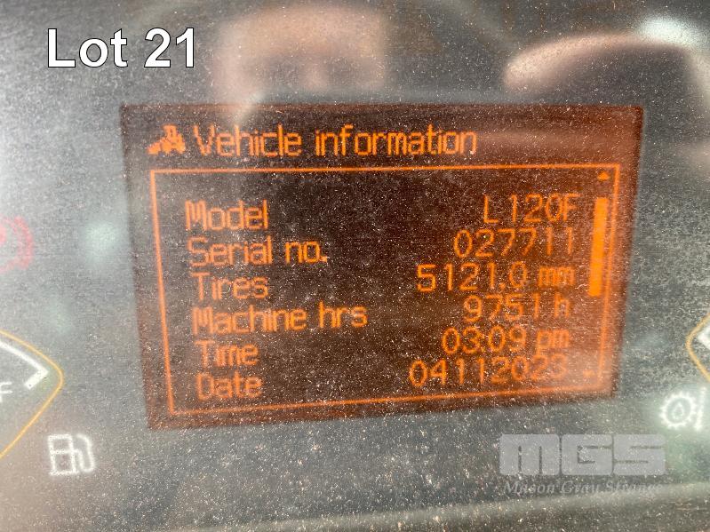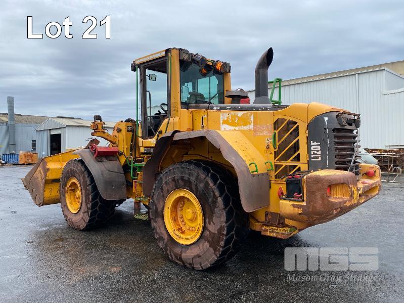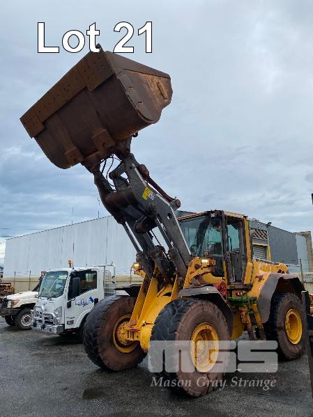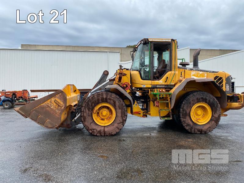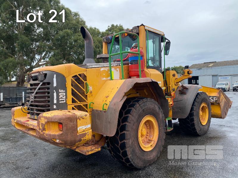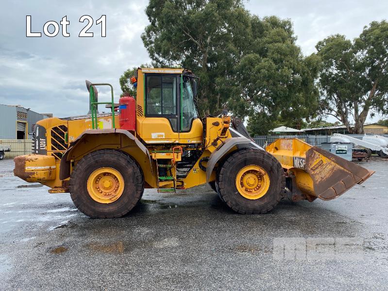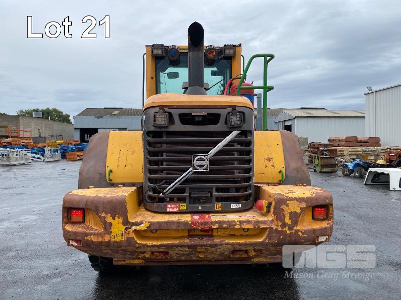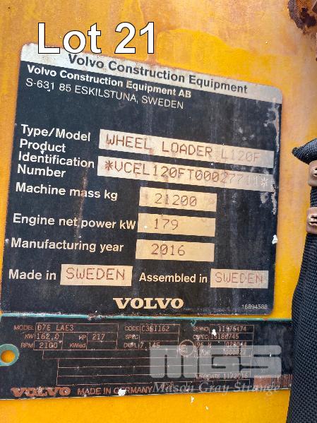 2016 VOLVO L120 WHEELED ARTICULATED FRONT END LOADER PIN: VCEL120FT00027711 HOURS: 9,751hours SHOWING VOLVO, 6 CYLINDER TURBO DIESEL, 179kw (217HP) ENCLOSED A/C CAB ROPS/FOPS GP BUCKET3.50m3 LED FORWARD & REAR SPOTLIGHTS & WARNING BEACONS REAR CCTV & LCD SCREEN MINE SPEC FIRE SUPPRESSION SYSTEM BATTERY ISOLATION SWITCHES QMW INDUSTRIES WORK PLATFORM CONTROL SYSTEM EMERGENCY PUSH BUTTON STOP SWITCHES REAR & SIDE MISSING 1 x DOOR GLASS KEY #58 ASSET #LS144