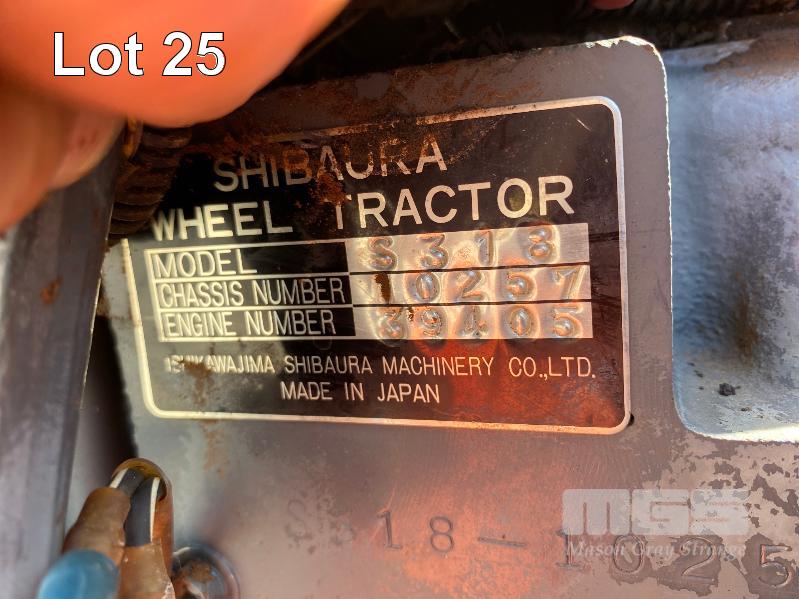 SHIBAURA S318 4x4 TRACTOR REG: BVS 909 (SA) ENG: 39405 HOURS: 1,002hours SHOWING 3 CYLINDER, MANUAL TRANSMISSION, DIESEL, CHASSIS NO: 10257 FITTED WITH ROPS BAR, FRONT COUNTER WEIGHT HITCH PTO, 3PTL KEY #39 (WITH 1 KEY/S)