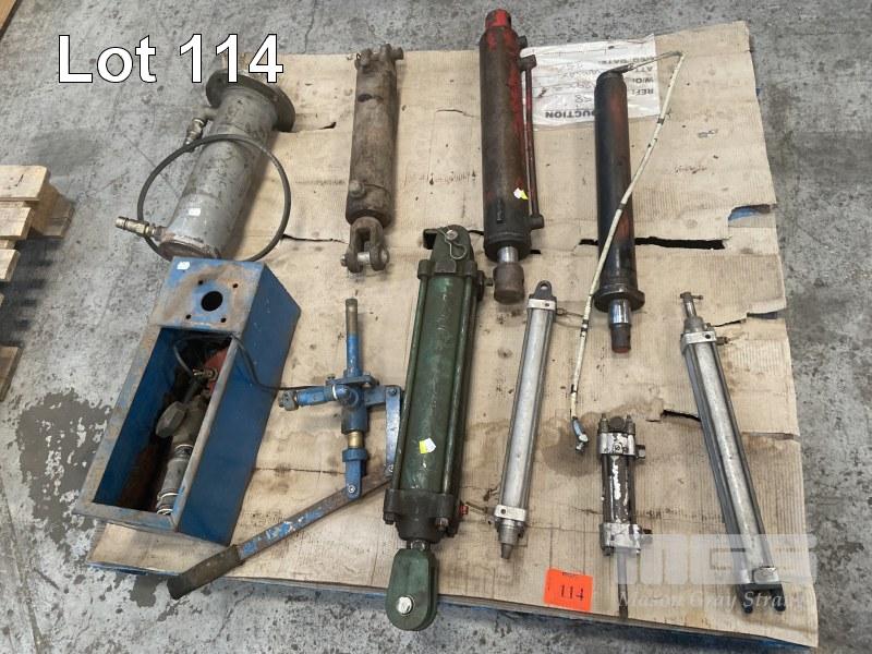 4 x ASSORTED HYDRAULIC RAMS, 4 x ASSORTED PNEUMATIC RAMS, HAND PUMP, ETC