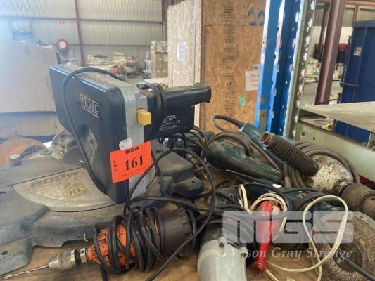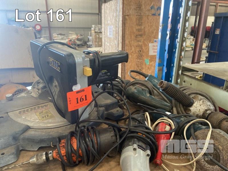 COMPOUND MITRE SAW, GMC, 205mm, DIE GRINDERS, ANGLE GRINDER, 3 x BOSCH DRILLS & RENOVATOR MULTI TOOL, 240V