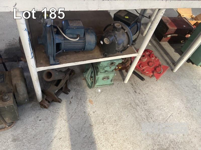 2 x WATER PUMPS, 240V, SMALL GENSET, SINGLE CYLINDER PETROL, 15V DC, 20AMP & AIR COMPRESSOR PUMP, ETC