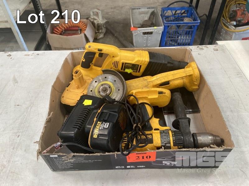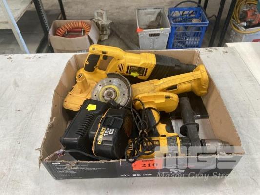 DEWALT CORDLESS ANGLE GRINDER, DRILL & RECIPRO SAW, 2 x BATTERIES & CHARGER