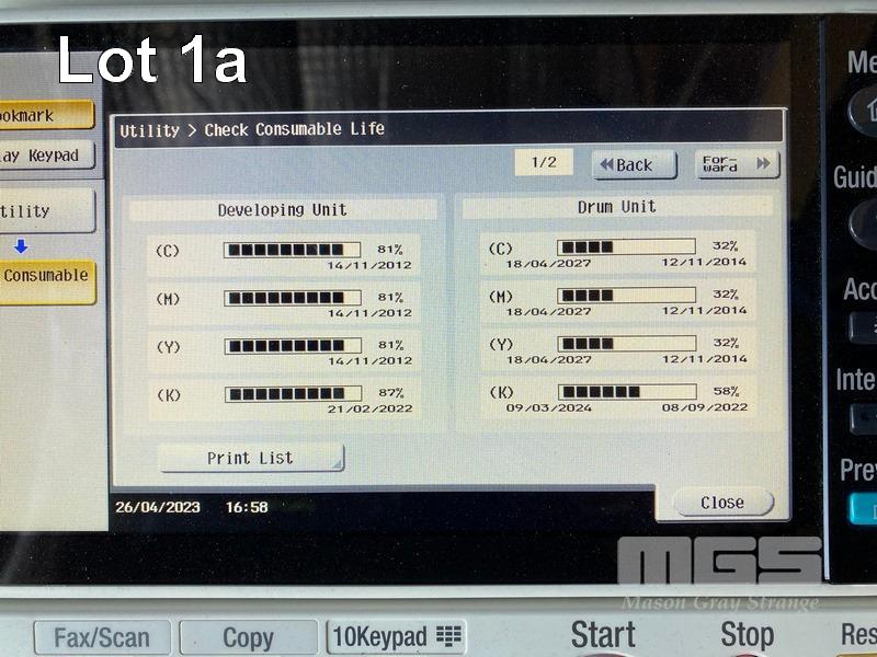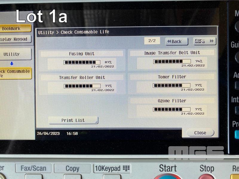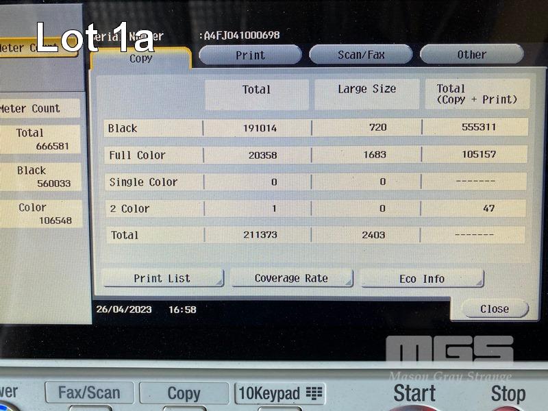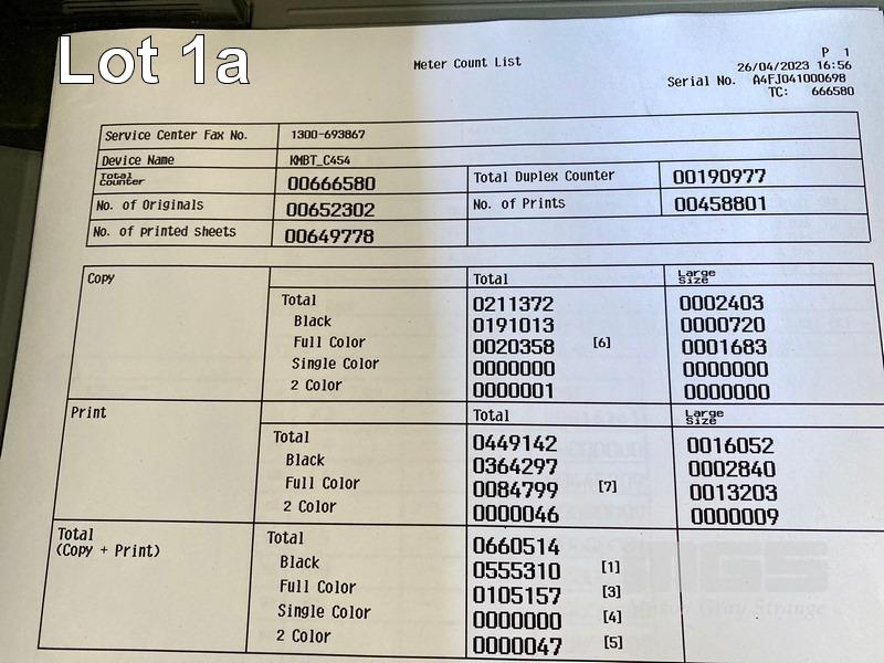 PHOTOCOPIER, KONICA MINOLTA BIZHUB C454 COLOUR DIGITAL, PRINTER USB & NETWORK PORTS, FINISHER (FS-534), 106,548 COLOUR & 560,032 B&W COPIES SHOWING (TEST PAGE ATTACHED) S/N:A4FJ041000698