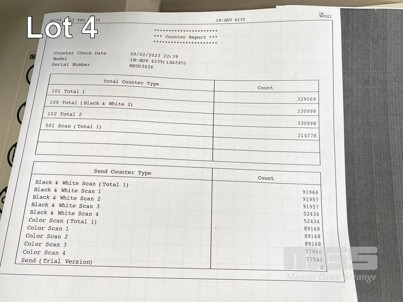 PHOTOCOPIER, CANON imageRUNNER ADVANCE 4235, ADF, PRINTER USB & NETWORK PORTS, INNER FINISHER, 331,000 B&W COPIES SHOWING (TEST PAGE ATTACHED) S/N:RKU03026