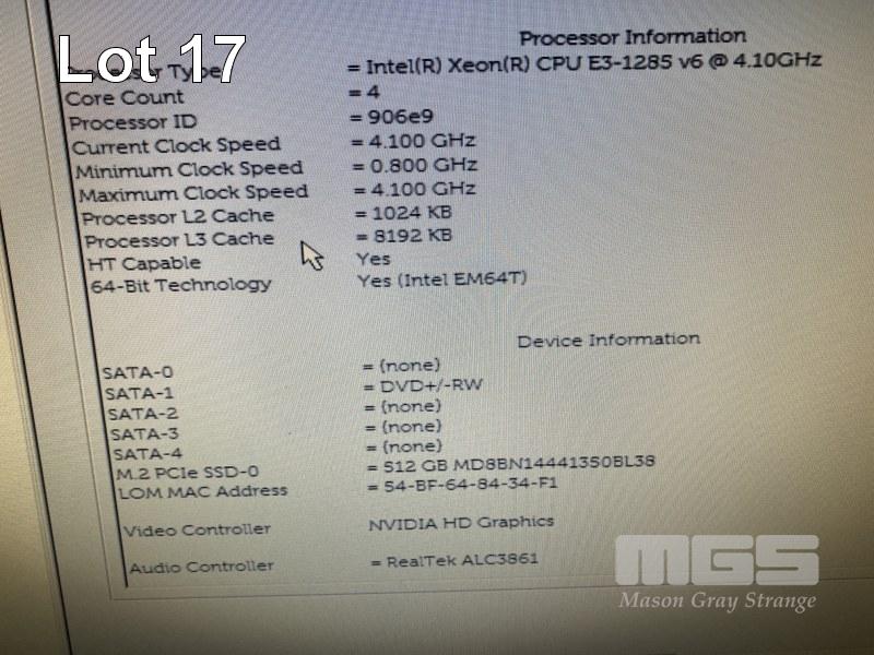 MINI-TOWER PC, DELL PRECISION TOWER 3620 WORKSTATION, XEON E3-1285 v6 @ 4.1GHz, 32GB DDR4 RAM, 512GB NVMe M.2 SSD, DVD-RW, CARD READER, 8GB NVIDIA QUADRO P4000 VIDEO (4 DP), WINDOWS 10 PRO INSTALLED, KEYBOARD & MOUSE S/N:HKPD0T2