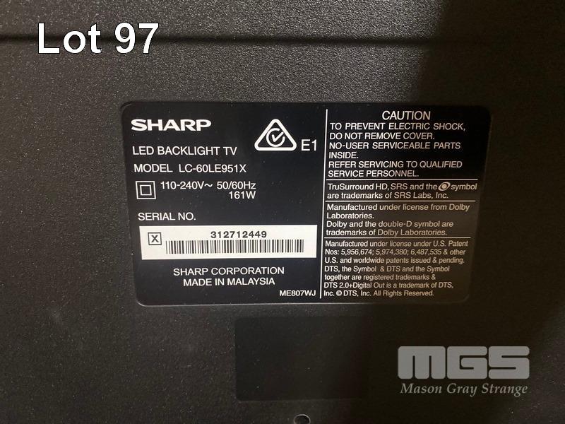 SHARP AQUOS 60" LED TV, LC-60LE951X WITH REMOTE (NOTE: NO STAND, WALL BRACKET INCOMPLETE) S/N:312712449