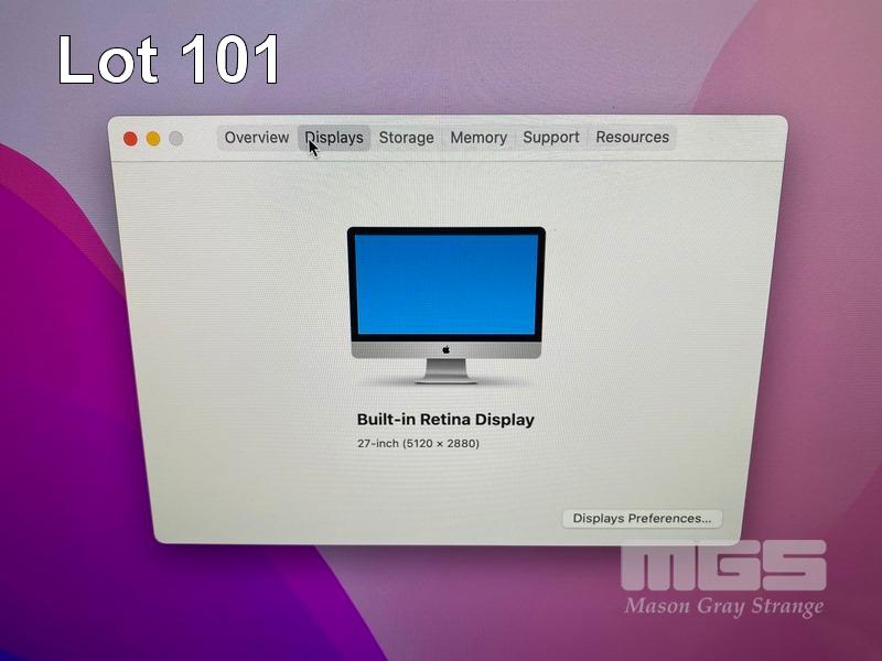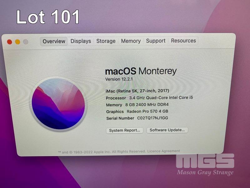 APPLE iMAC 5K (A1419), CORE i5 7500 (7TH GEN) @ 3.4GHz, 8GB DDR4 RAM, 1TB FUSION HDD, BUILT-IN 27" RETINA DISPLAY (5120x2880), 4GB RADEON PRO 570 VIDEO, Wi-Fi, MAC OS 12 INSTALLED, KEYBOARD & MOUSE S/N:C02TQ17NJ1GG