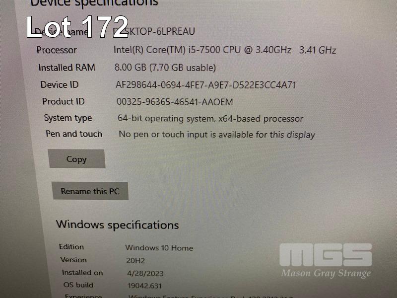 ALL-IN-ONE PC, DELL OPTIPLEX 7450, CORE i5 7500 (7TH GEN) @ 3.4GHz, 8GB DDR4 RAM, 512GB SSD, INBUILT 23.8" FHD WIDESCREEN (1920x1080), INTEL HD VIDEO, WEBCAM, 7 x USB, 1 x USB-C, WINDOWS 10 HOME INSTALLED, KEYBOARD & MOUSE S/N:7GN6LQ2