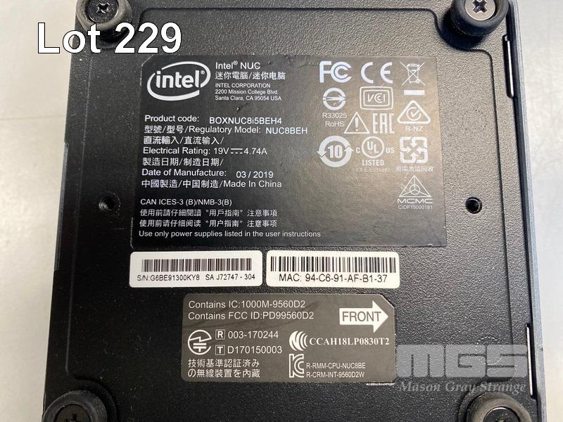 DESKTOP PC, INTEL NUC MINI, NUC8i5BEH4, CORE i5 8259U (8TH GEN) @ 2.3GHz, 8GB DDR4 RAM, 240GB SSD (NO POWER SUPPLY) (NOTE: MISSING 1 x USB PORT) S/N:G6BE91300KY8