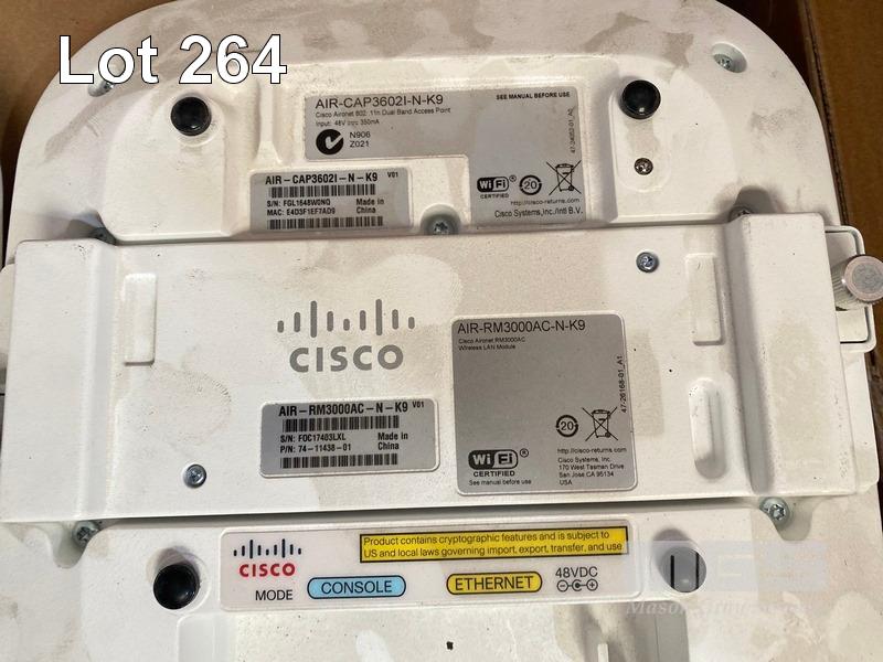 80 x CISCO AIRONET 3600 SERIES WIRELESS ACCESS POINTS, AIR-CAP3602I-N-K9 WITH WIRELESS LAN MODULES, AIR-RM3000AC-N-K9 & BRACKETS