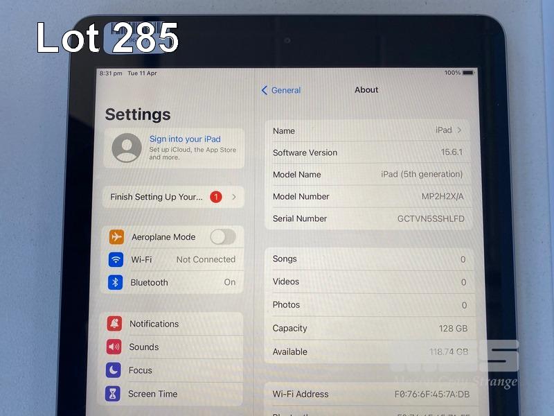 APPLE iPAD (5TH GEN), 128GB, Wi-Fi, SPACE GREY, MODEL A1822, MP2H2X/A WITH CABLE & CHARGER S/N:GCTVN5SSHLFD