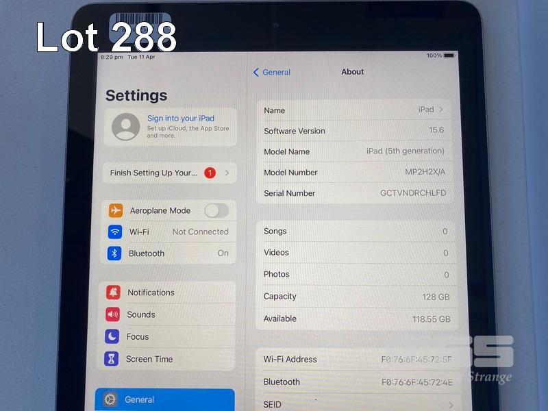 APPLE iPAD (5TH GEN), 128GB, Wi-Fi, SPACE GREY, MODEL A1822, MP2H2X/A WITH CABLE & CHARGER S/N:GCTVNDRCHLFD