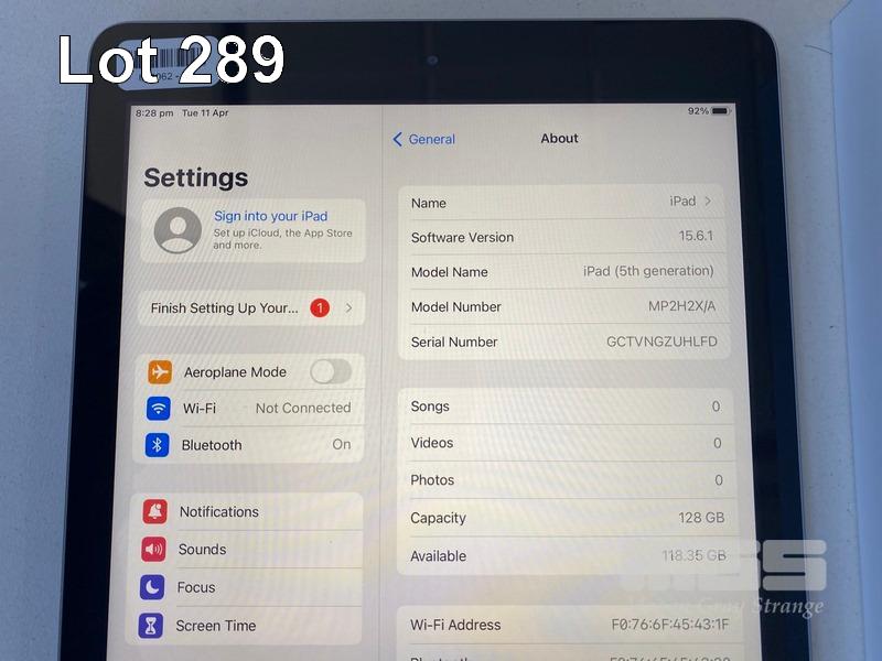 APPLE iPAD (5TH GEN), 128GB, Wi-Fi, SPACE GREY, MODEL A1822, MP2H2X/A WITH CABLE & CHARGER S/N:GCTVNGZUHLFD