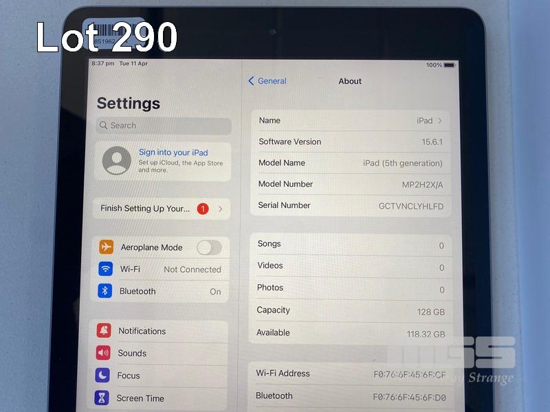 APPLE iPAD (5TH GEN), 128GB, Wi-Fi, SPACE GREY, MODEL A1822, MP2H2X/A WITH CABLE & CHARGER S/N:GCTVNCLYHLFD