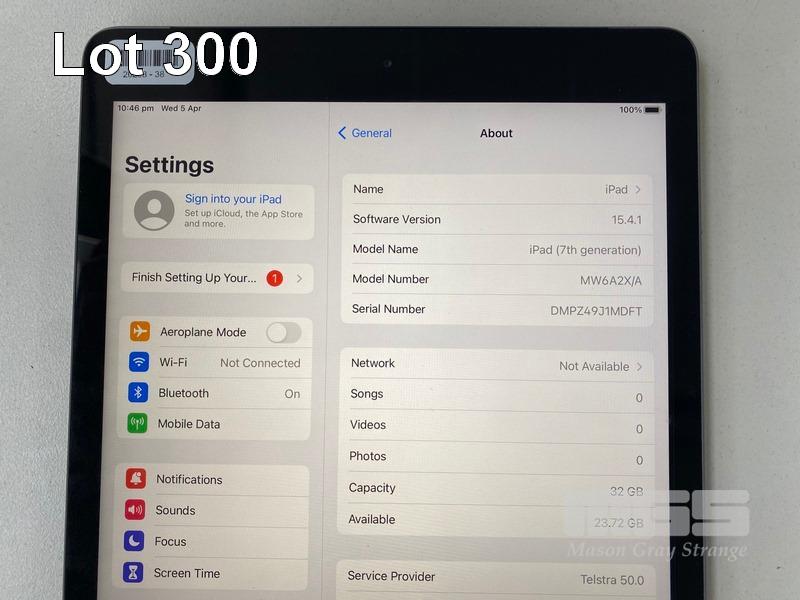 APPLE iPAD (7TH GEN), 32GB, Wi-Fi, CELLULAR, SPACE GREY, MODEL A2198, MW6A2X/A (NO CABLE, NO CHARGER) S/N:DMPZ49J1MDFT